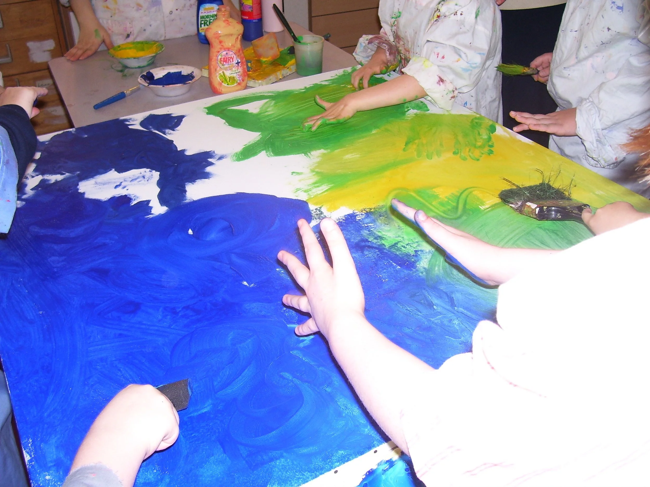 Young pupils with complex needs enjoyed the tactile nature of the art materials used to create this 'Under the Sea' themed mixed media collage. They also explored mark making in different ways such as painting wet fabric and squeezing paint mixed with salt from bottles and watching it move and mix together.